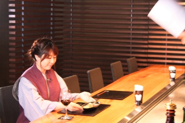 お料理はご夕食のコース料理を一品ずつ撮影され、大とろポワレのにぎりの時はちょっとした歓声も(#^.^#) 照明で脂がすぐにとけていく。