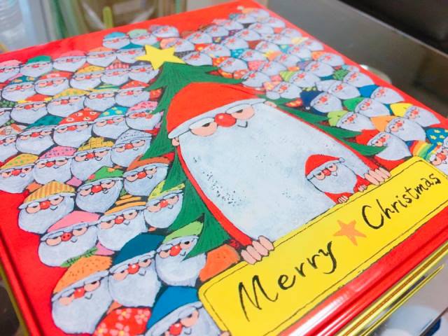 サンタクロース缶の底に サンタさんがおやすみしている 絵が描かれていることをーーー!