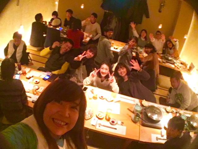 懇親会会場の「自然・食彩・浪漫 おしか」さんは 掘りごたつのお座敷です。牡蠣のお鍋など 皆さんとの会話も弾むお料理を素敵な雰囲気でいただきましたよ♪ みんなの笑顔がサイコーでした。