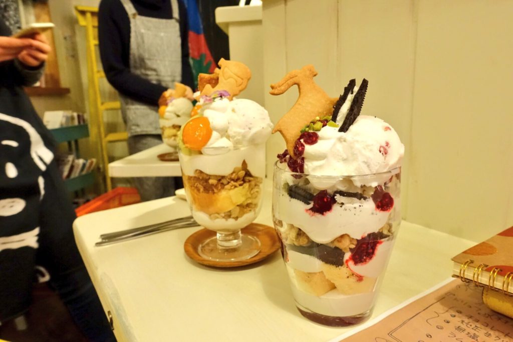 ウチコちゃんのお店ではお茶やお菓子を食べることもできるんだけど 星座パフェっていうのがあってーー月替わり というか 星座替わりにウチコちゃんデザインのパフェが食べられるのーー素敵でしょ?わたし、山羊座なのでーーー 山羊座パフェを食べるのが夢だったのーーーー でね、ウチコちゃんが念願叶えてくれました!