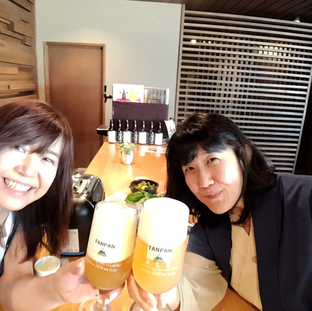 じゅんこさんとわたしまで!ランチでカンパーイ! 旦那さまのこうたろうさんは 「TANPANIPA」 も!!お散歩&渓流釣り後の温泉、そして湯上りの 短パン生ビールをお楽しみいただきましたーー!
