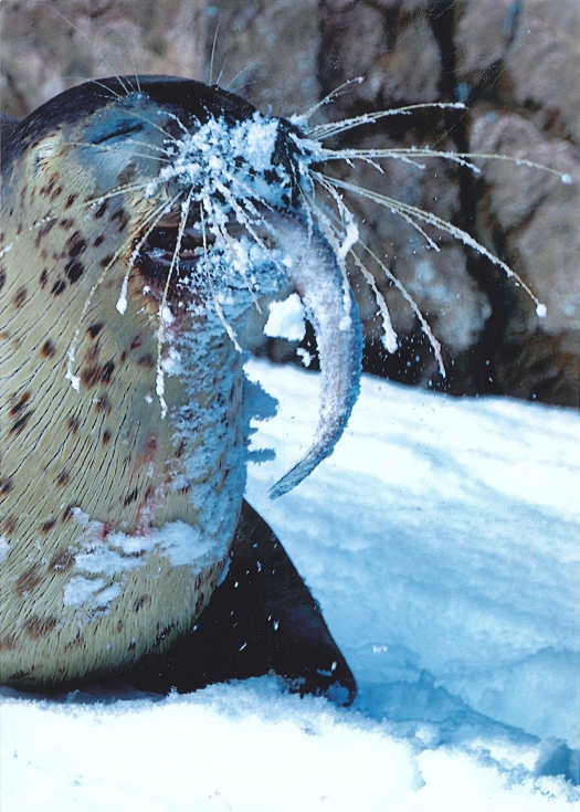 あざらしの餌の魚をくわえた様子が とっても愛くるしいですよね♪