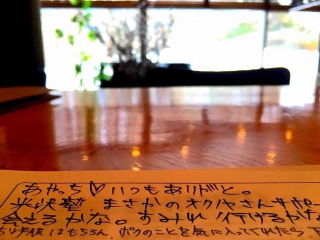 Facebookで 先に知ってしまった時は ホントびっくりしたけど 手紙で見て また嬉しさ弾けましたーーーーー(笑) すみれで会うことも実現するのかな~~!!!!!!!!