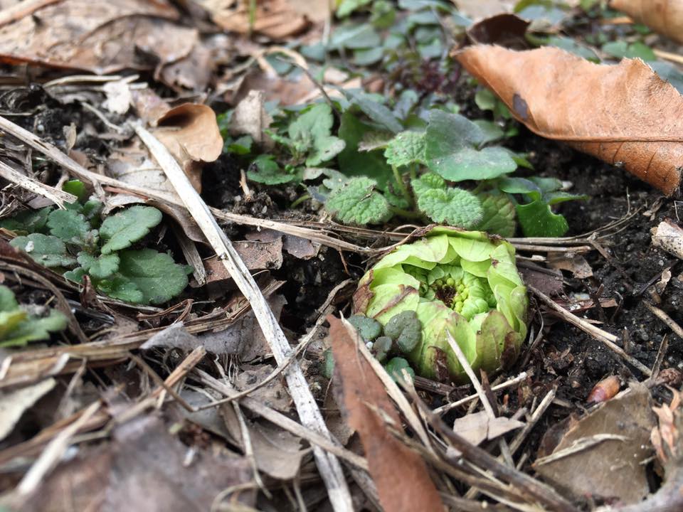 お宿に戻る途中に 地上に顏を覗かせている ふきのとうをみつけて
