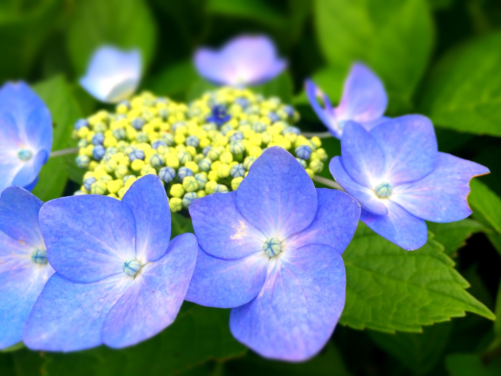 あじさいと カルガモとネコの赤ちゃんーすみれガーデンへの訪問者ー
