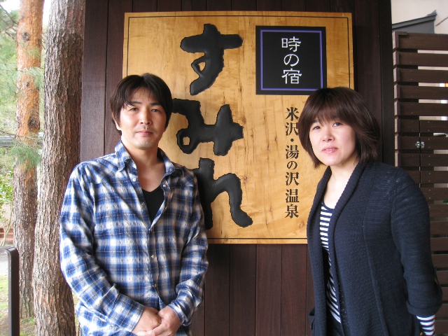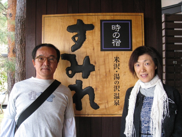ご高齢のご両親様、温泉やお料理をたっぷりと満喫なさって 息子さんへの報告に笑顔の記念撮影。「やさしい息子なんですよ」とお母様。「息子のお陰でゆっくりできました」とお父様。お帰りに迎えに来てくださった息子さんがわたしに囁きました。