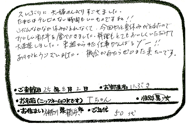 今回はご夫妻のご旅行でお越しいただいた皆さまからのご感想でした。