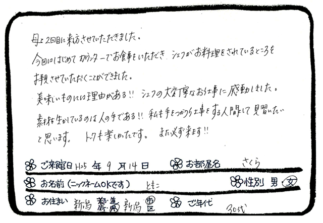 「美味しいものには理由がある!!」2回目の母娘すみれ時間♪新潟県新潟市の30代ともこ様より