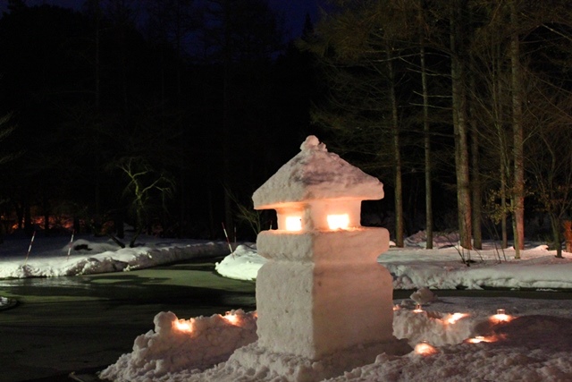 昨日は フロントのりんりんが 日没前に 雪灯篭に火をいれてくれました。