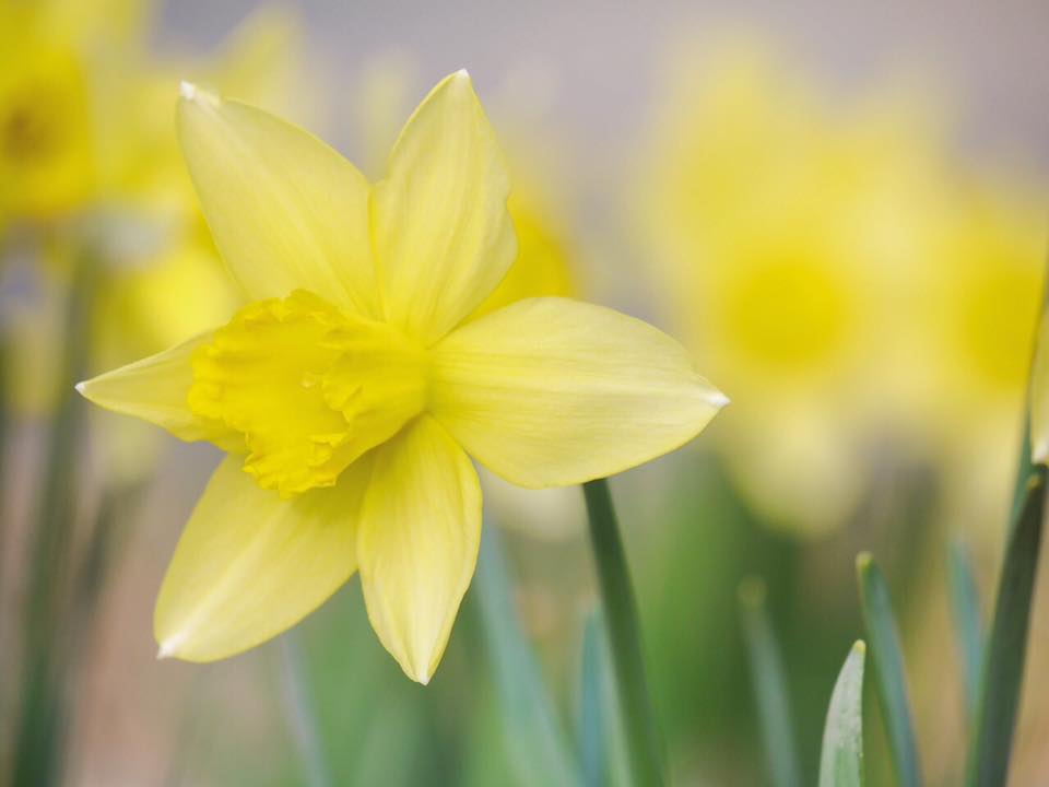 黄色のスイセンには 「わたしのもとへ帰って」とか「愛に応えて」などの花言葉があるそうです。