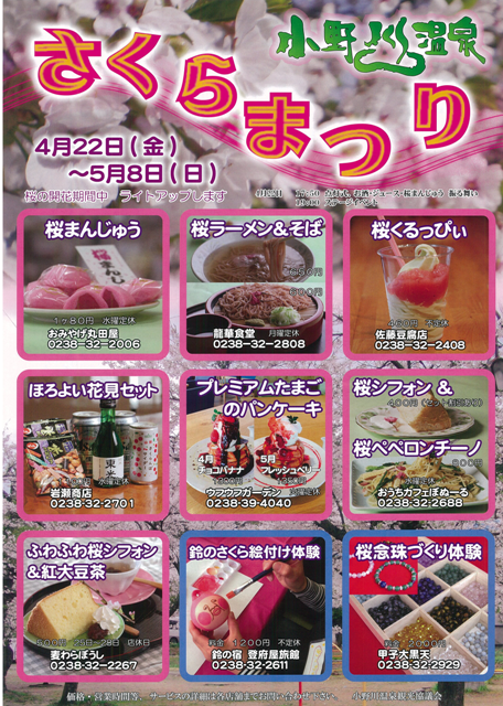 小野川温泉の「さくらまつり」は22日から♪ーお宿周辺のイベントー