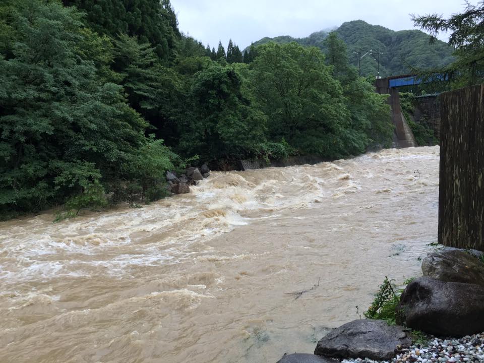 ありがたいばかりでしたが 一ヵ月分に相当する雨量が想定されていたことから 今回ばかりはお宿横の赤石川の増水や氾濫が心配されていました。