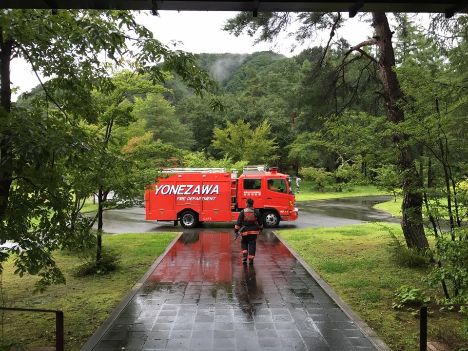 15:40には 米沢市の消防署員の方々が 河川の様子を見にきてくださりながら 注意を促す巡回に来てくださいました。