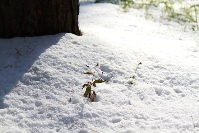 すみれの周辺も真っ白になって  時折のぞかせる太陽が