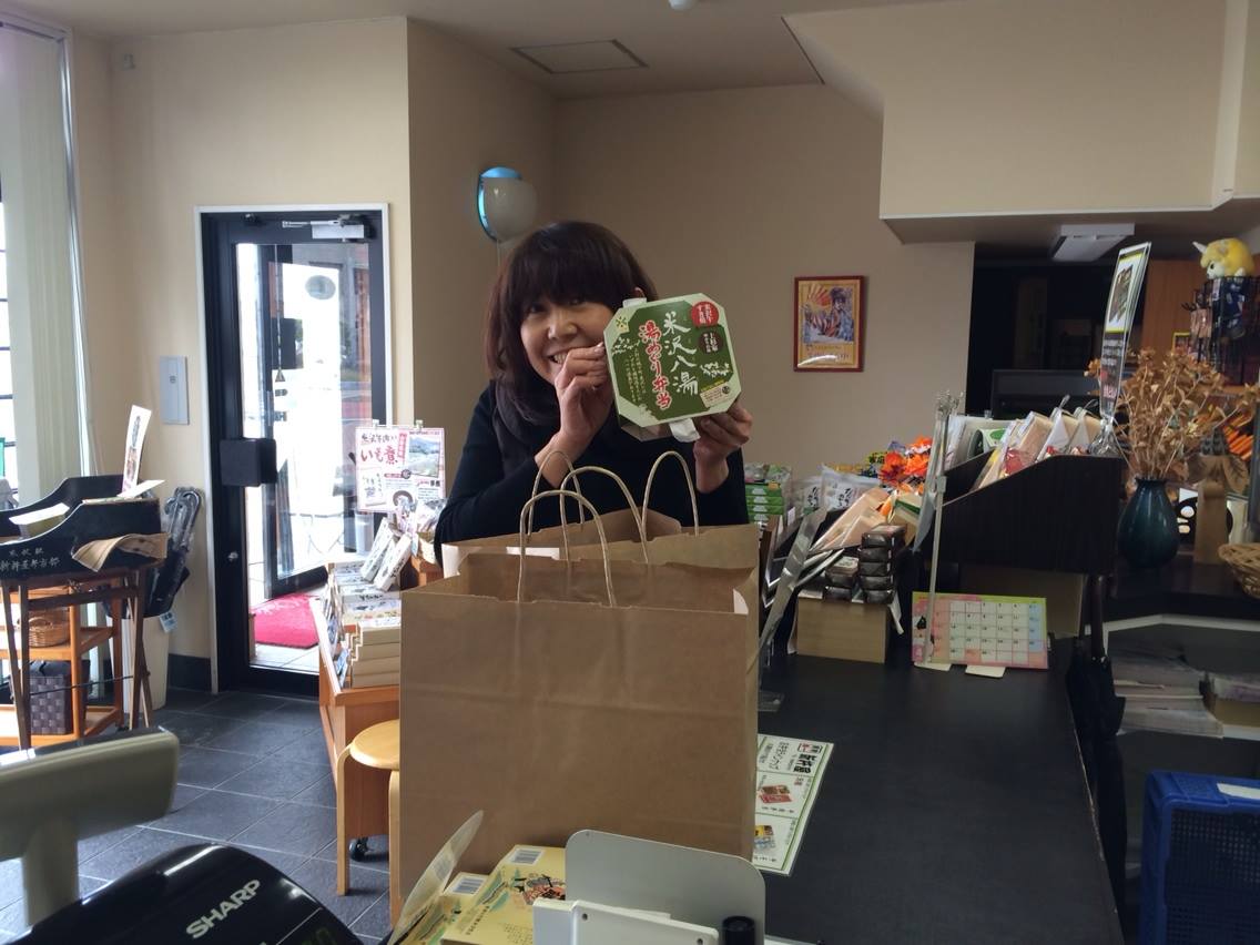 米沢駅さんへは 隣の観光案内所「アスク」さんのモニターで湯めぐり弁当のプロモーションビデオをかけてくださるというので DVDをお持ちしてました。
