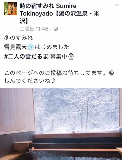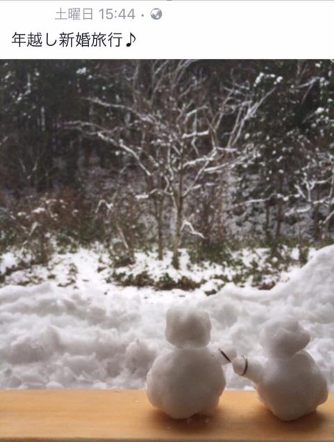 そして 当日ね、ちょうど雪が少しだけ積もったことから お宿のFacebookページに