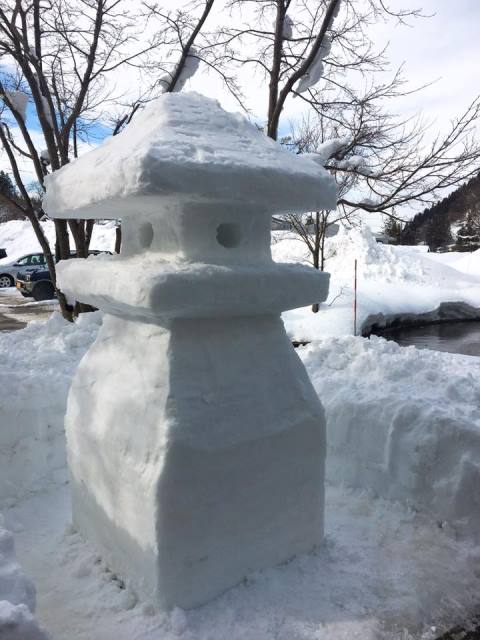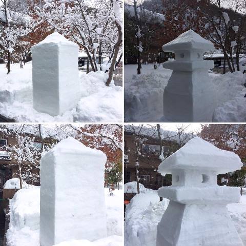 スタッフのじゅんちゃんが お父さまが持っていた雪灯篭のミニチュアを借りてきてくれて その雪灯篭を参考に削ったんです。そうそう。いままでの雪灯篭も良かったけど コンノの言う通り 今回の雪灯篭はとっても 素敵にできたーーーー☆(笑)