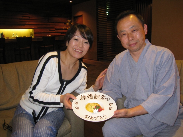 ご結婚記念日を祝って ご夕食後にお祝いの記念写真♪