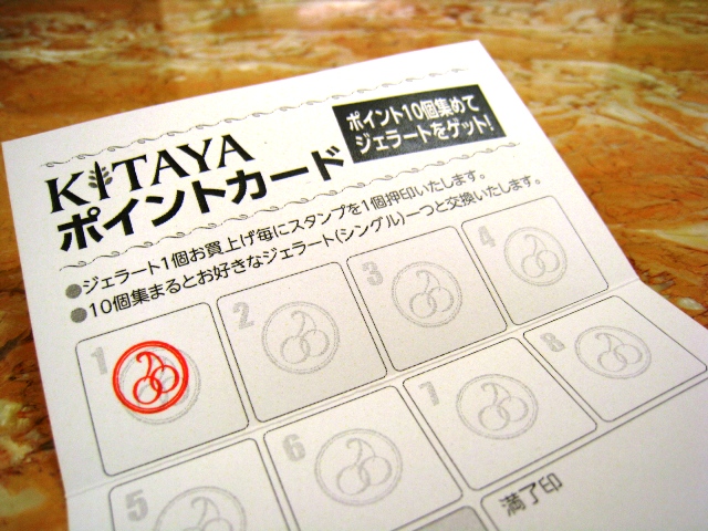 あ、それからね、店長さんが「ポイントカード作りますね」って勧めてくださって、1個スタンプ押してもらいました!スタンプが10個で ジェラード1個プレゼントしてもらえるんだそうです。わたし、貯めれるかしら~(汗)
