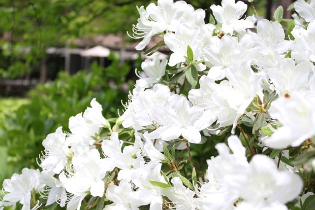 紫陽花の影に隠れるように 見事に咲いていたのは 白つつじ。