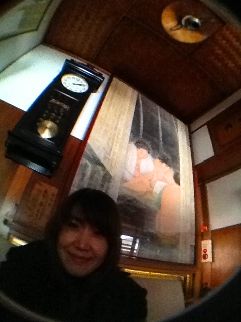 待合いのスペースにある「湯滝」の素晴らしい絵画を拝見しながら 温泉を愉しんでいる