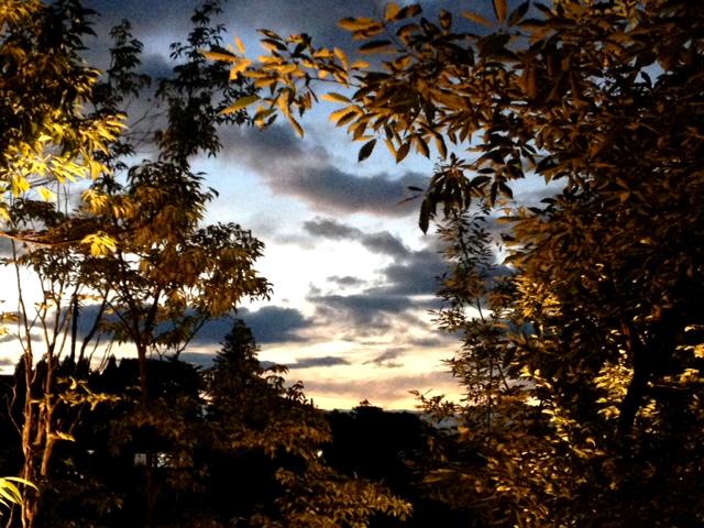 18時過ぎ お客様がご夕飯前にお散歩なさっていらっしゃいましたが その後 見る見るうちに日が暮れてどんどん変わっていく色彩が まるで絵画のようで その美しさに感動してしまいました。
