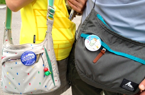 この缶バッヂ、久々に登場ですけどね、毎年恒例でこの時期にお越しいただくお客様が 売店で販売中の缶バッヂを2種類買ってくださって☆早速バッグに着けてくださっていたんです!