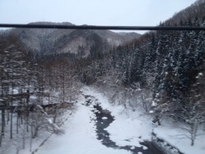 福島県との県境を通過した辺りから次第に積雪量は少なくなり