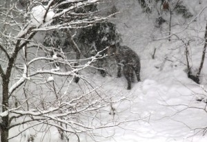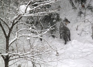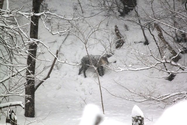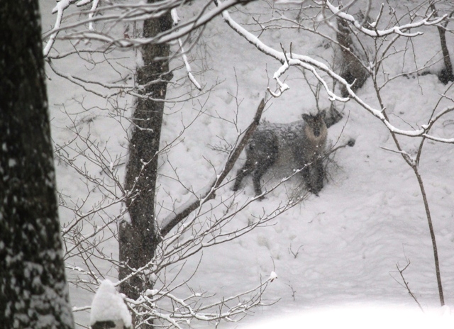 建物のすぐ横に川がありますが そのちょうど対岸に そのカモシカは現れました。冬の間、十分な食べ物はないと思うけれど 元気に冬を越して欲しいなぁ。って思いました。