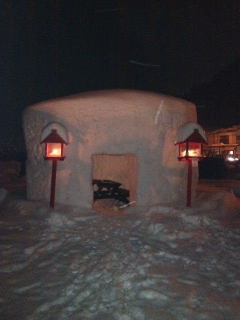 かまくらで遊んでいたら、その後の懇親会の時間に遅れそうになって急いで移動。