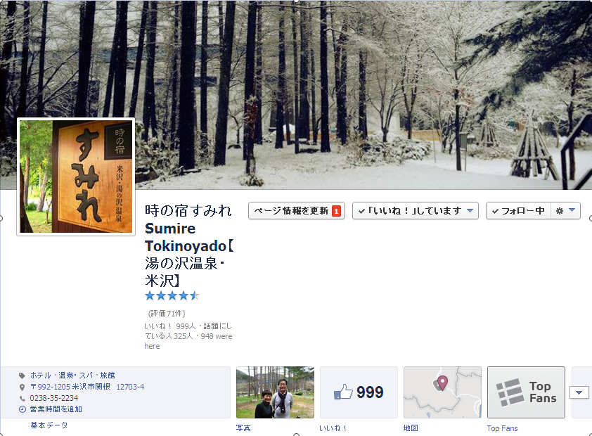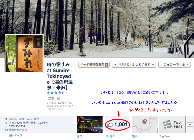 時の宿すみれfacebookページの「いいね!」が1000に☆