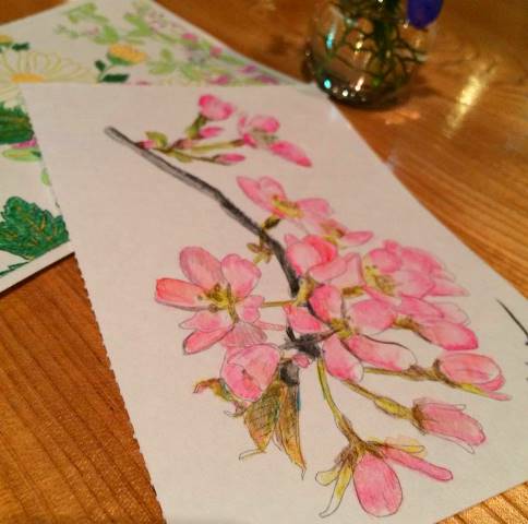 水彩色えんぴつでサクラのぬり絵をしてくださっていたのは、昨日チェックアウトなさったお客様♪