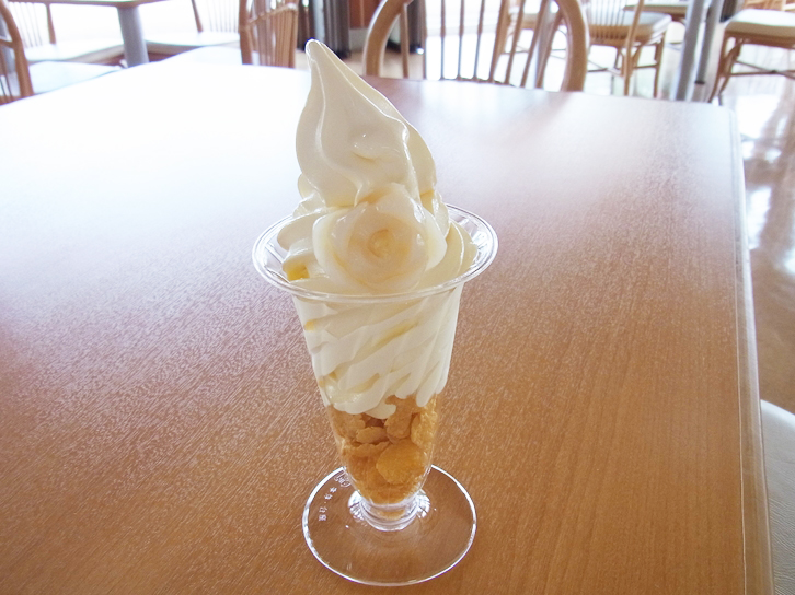 花の形をした百合根がトッピングされている ゆり園名物の「ゆりソフト」です!!!!!