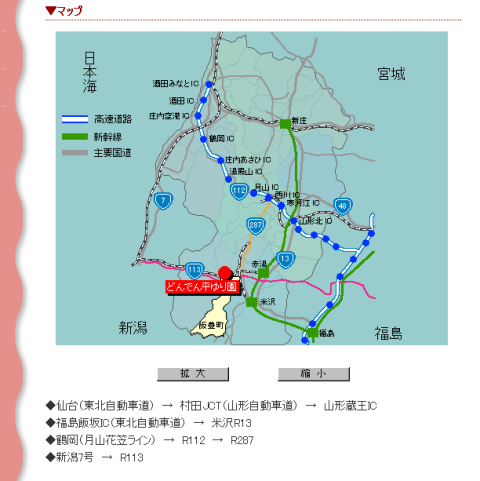 米沢からは1時間ほど。お宿にチェックインする前にお出かけになるのもいいですね!