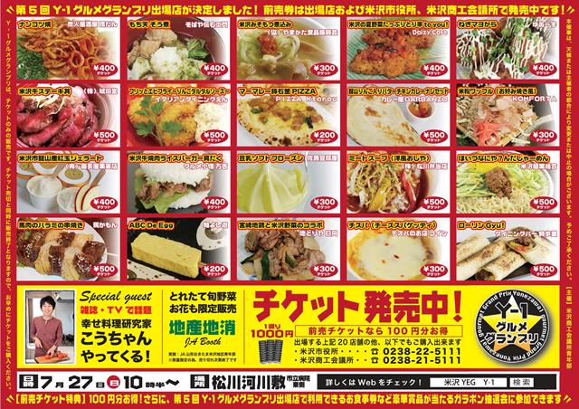 Y1グルメグランプリは「地域の材料を使用し、地産地消を通じて地域を活性化させよう!」という思いから生まれた市民イベントなのですが、毎年たくさんのお店がエントリーしていて 工夫された安くて美味しい屋台料理などが食べることができ 最後にはお客さん一人一人が美味しかった!と思った料理の投票もあり 全メニューの中から グランプリが決定されるんです✩昼間から美味しいものを食べ ビールを飲んだり。特設ステージの演奏などを観ることもできるんですよね~♪米沢市民が楽しみにしている夏のお祭り。わたしも毎年伺ってます!