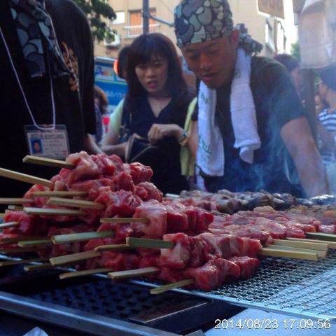 只今 麻布十番商店街において「麻布十番納涼まつり」が開催中ですが「米沢牛のれん会」が米沢牛串焼きの屋台を昨日23日より出店中で 今日も15:00から屋台がオープンいたしました☆