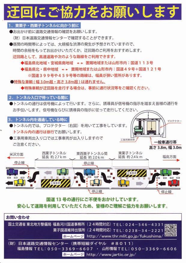 国道13号 栗子トンネル交通規制のお知らせです!10月15日~