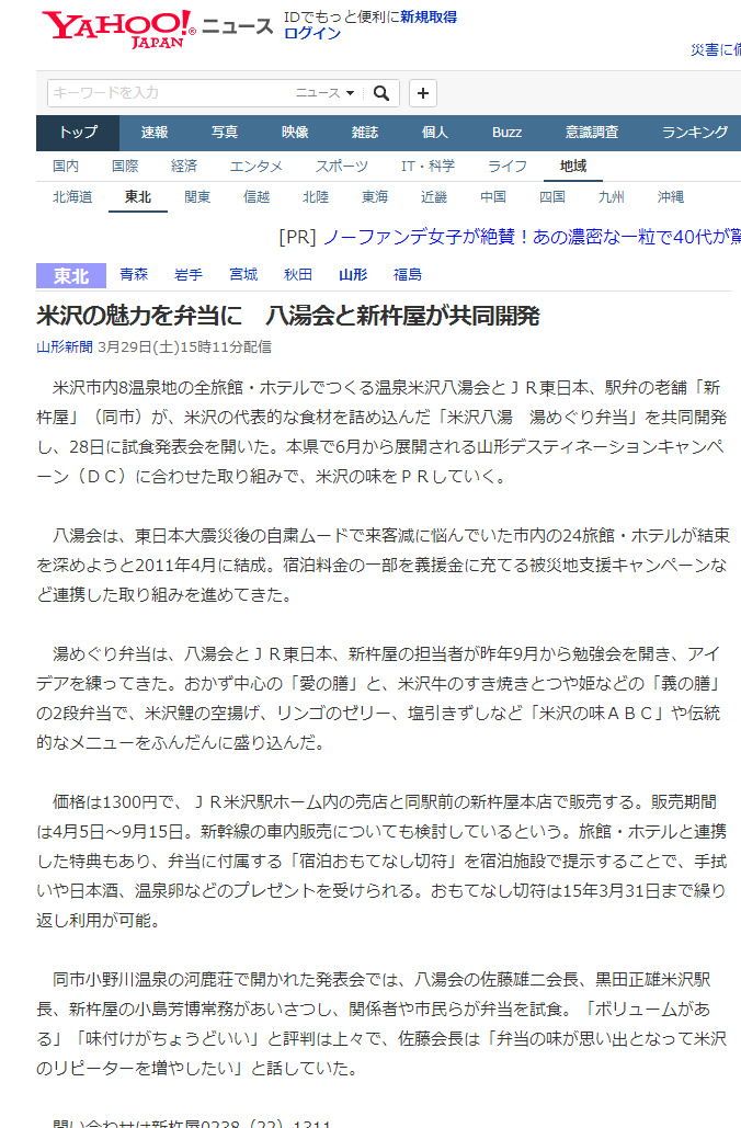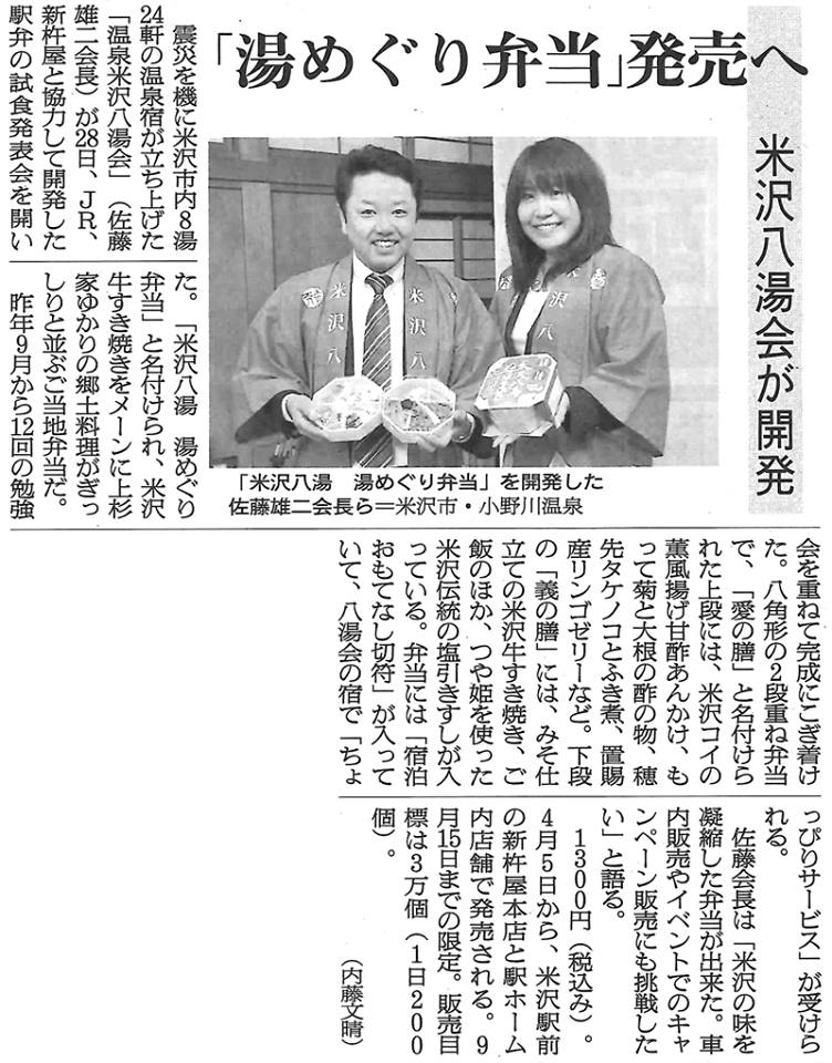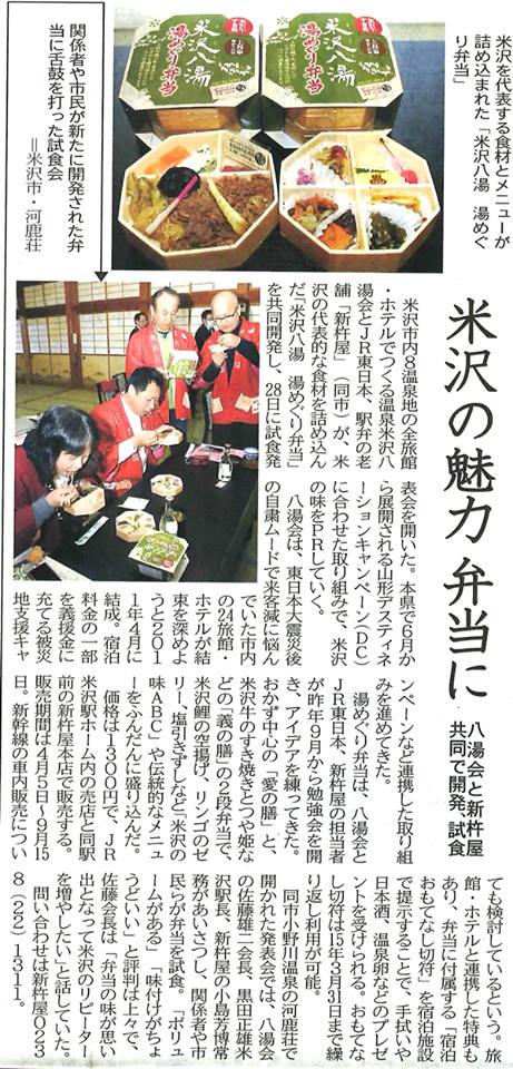 米沢八湯の湯めぐり弁当が新聞&ニュースWEB版に掲載されました♪