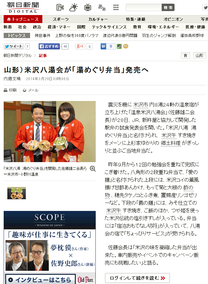 米沢八湯の湯めぐり弁当のことを 記事にしていただきました。