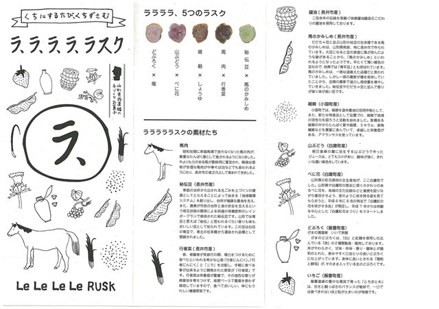すみれで以前働いてくれていた フロントだった ふなやまみほさんが 娘ちゃんを連れて訪ねてくれた時にもらった 長井周辺の特産品を使った 「ラ、ラ、ラ、ラ・ラスク」が とっても美味しくておすすめしたら やっぱり 立ち寄ってくださってました。馬肉と行者にんにくのラスク(笑)