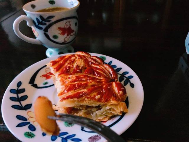旬の白子と日本酒と 押し花とリンゴのコンポート ーいつも一緒ー