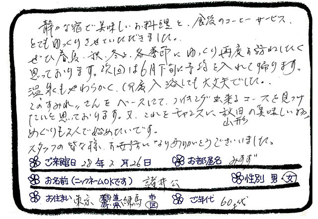 女将ブログ「すみれの便り」