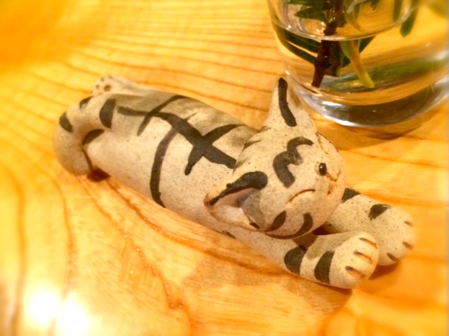 陶彫刻と水彩画♪温泉旅館の女将のひとときー陶人形師水野さんのねこ