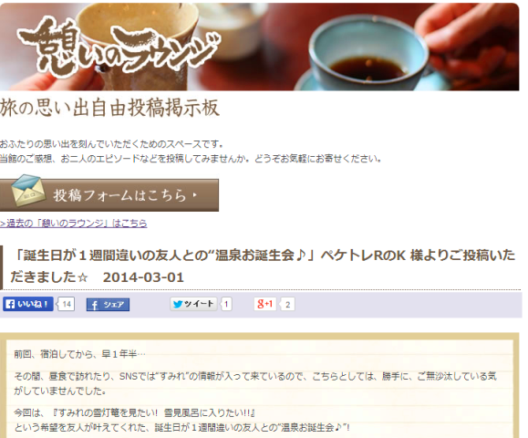 山形・米沢の温泉への二人旅♪旅の思い出メッセージいただきました☆