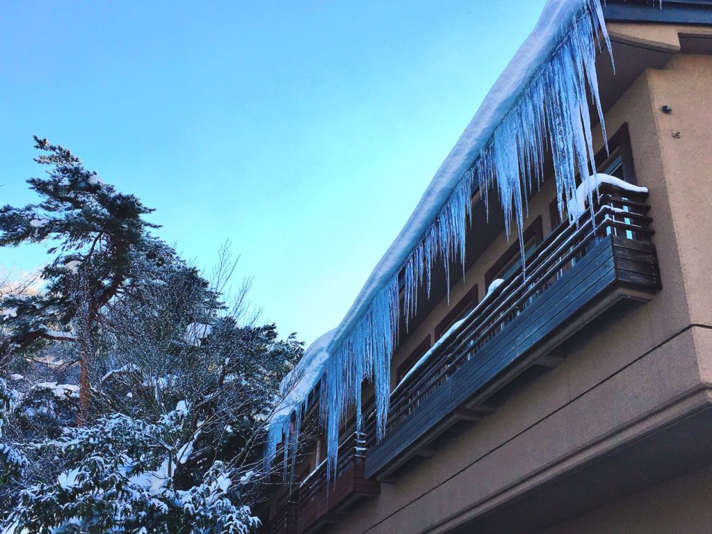 客室の屋根からのつららのカーテン