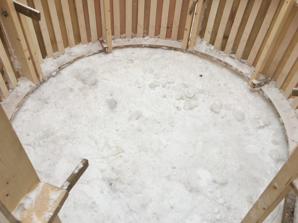 そして 隙間に雪を踏み固め そのまま一晩置いて 枠を外したら完成。雪の日でも職人さん達の頑張りが凄すぎて 感服いたしましたーーほんとうに。寒い中の作業 とってもありがたかったです。