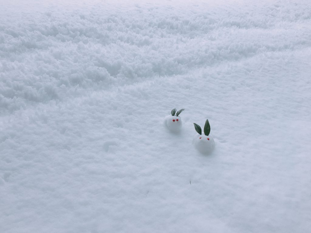チェックインしてからの夕方のお時間帯は 冷えてくることもあるので かまくら内にブランケットやホッカイロを用意しています 「雪うさぎ」や「ミニ雪だるま」を作って遊べるように花材も用意しましたーー わたしの雪うさぎはこんな感じ(笑)