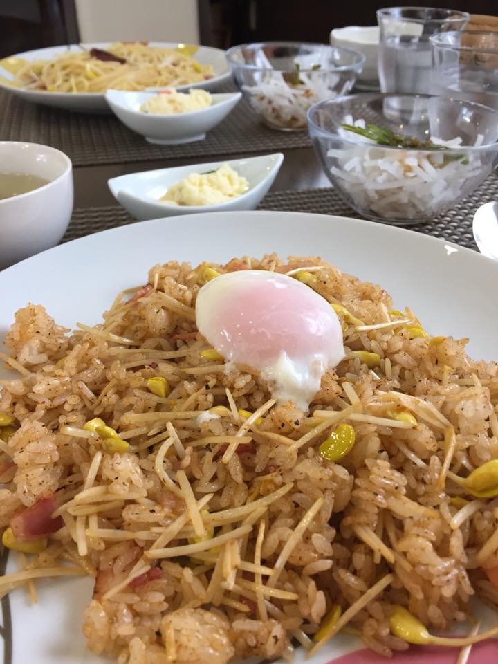 今は おうちカフェぼぬーるさんの温泉玉子のせピラフに想いを募らせていますーー