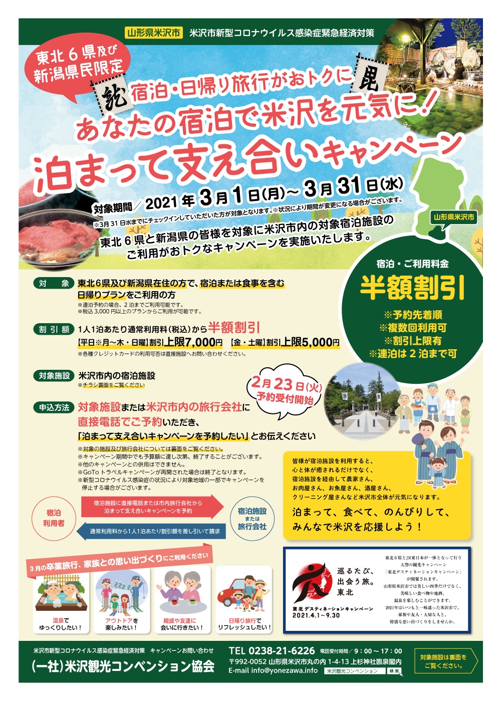1.【米沢市】泊まって支え合いキャンペーン(3月31日宿泊まで)【3月16日現在受付終了となりました】