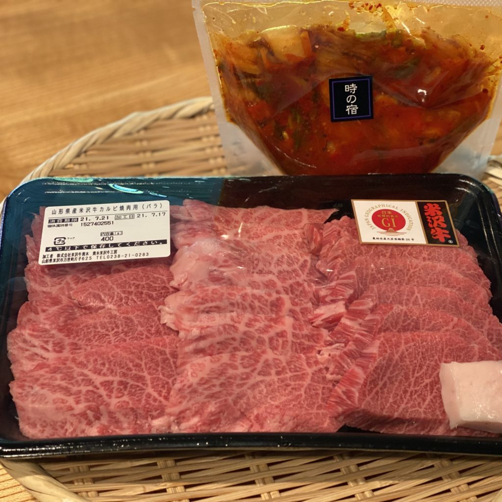 米沢牛の焼肉と特製キムチのコラボで♪